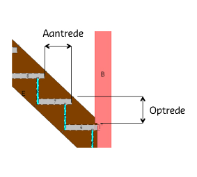 Optrede: Het hoogteverschil tussen twee opeenvolgende tredevlakken  (het aantal optreden is altijd 1 meer dan het aantal aantreden).