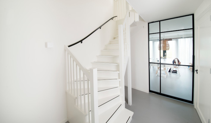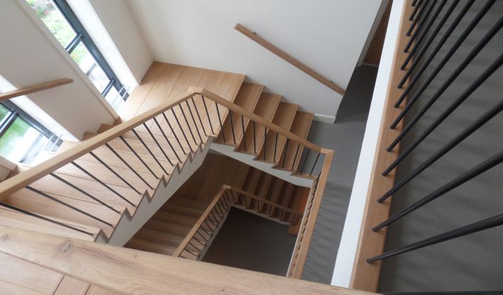 Wanneer de indeling van de woning hierom vraagt, kunnen wij van VIOS Trappen een passende tweekwart trap leveren. Deze draait twee keer, in tegenstelling tot onderkwart en bovenkwart die maar één keer draaien. Tussen de twee kwartdraaien zit een aantal rechte treden. Bij de kwartdraaien zijn de treden verdreven: ze zijn aan de binnenkant minder breed dan aan de buitenkant. Op ongeveer een derde uit de buitenkant zit een denkbeeldige looplijn, waar de treden even breed zijn en de trap dus gemakkelijk beloopbaar is.